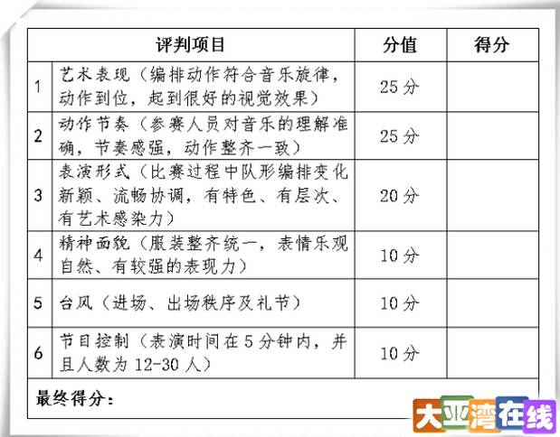 参赛音乐由各队伍自备,并按规定时间内交到大亚湾区宣教局,由区宣教局统一安排存入电脑。